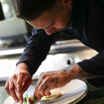 „Mein Vater hat ein eigenes Restaurant und wenn ich als kleiner Junge neue Turnschuhe wollte, dann musste ich erst mal etwas dafür tun. Kartoffeln schälen und sowas alles. Ich mochte Kochen anfangs überhaupt nicht – heute ist mein Vater mein größtes Vorbild, aber ich habe erst nach meiner Ausbildung das Kochen lieben gelernt, als ich gemerkt habe, wie frei ich dadurch bin und wie sehr ich meine Kreativität ausleben kann. Deswegen koche ich übrigens auch nie nach Rezept – das würde mich nur einschränken. Ich kann genau sagen, welche Komponenten in einem Gericht sind, aber wie viel von was, das weiß ich meist nicht.“